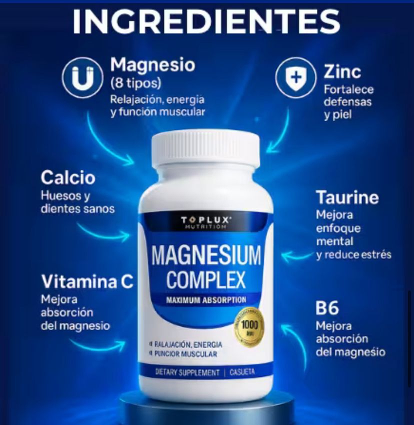 - 🧪 Fórmula avanzada con 8 fuentes de magnesio elemental.